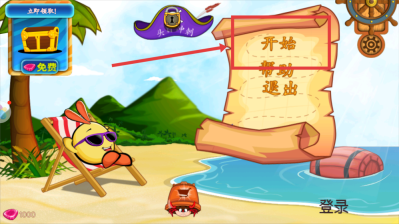 1、打开游戏,看到带有轮船舵和触摸继续提示的界面,点击该提示区域,进入游戏主界面。