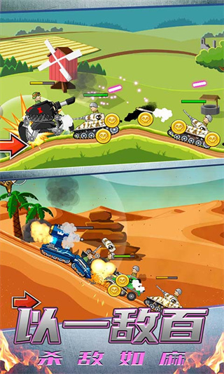 4、驾驶坦克在场景里行进,遇到敌人或目标时,再次点击攻击按钮发射炮弹,击败敌人,继续冒险之旅。