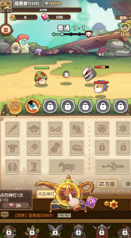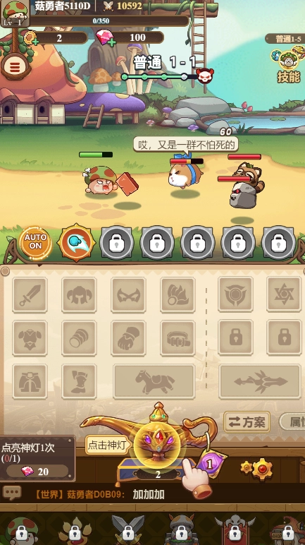 《冒险大作战》为玩家呈现轻松有趣的放置冒险玩法,玩家将在游戏里化身蘑菇勇者,投身全新的冒险旅程。所有场景与区域均可自由探索,还有各类强力道具可供挑选搭配,让你尽情畅享战斗的无限乐趣。