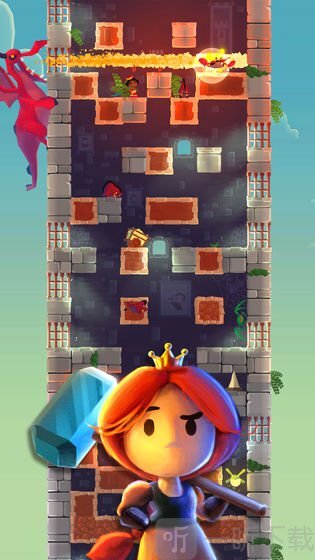 站上塔楼是一款2.5D冒险闯关手游,游戏在Google Play市场下载超过500万次,IOS市场也取得了不错的成绩。游戏中玩家要扮演被邪恶巨龙囚禁在高塔中的公主,利用王子遗留下来的巨锤打破高塔的地砖,击败沿途的敌人,最终逃出这座高塔赢得自由。这是一个很有趣的小游戏,操作简单容易上手但是需要考验玩家的手速和反应力。并且该游戏在关卡内设置了各种道具以及开局可以使用的装备,使得即使玩家反复挑战关卡也能获得不一样的体验,增加了游戏的趣味性和耐玩度。总的来说,这是一款值得体验的小游戏,喜欢的话就快来下载吧~