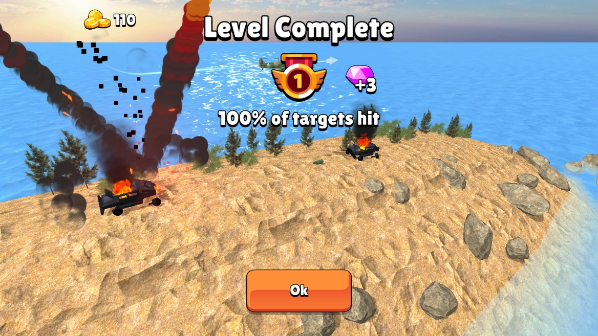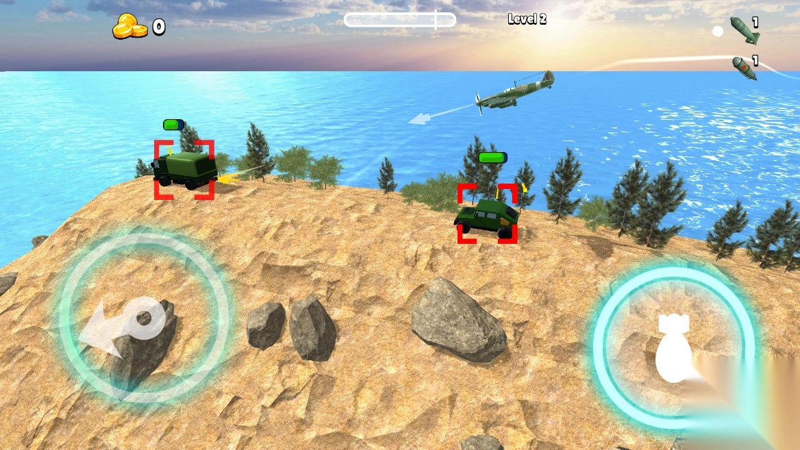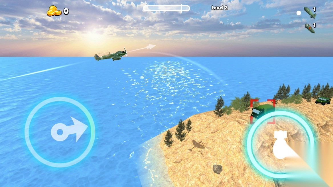 2.巧妙运用飞机炸弹的抛物线特性,精准锁定运输车,果断抛出炸弹将其炸毁;倘若战机配备了机枪等强力武器,不妨直接瞄准车辆展开猛烈扫射。