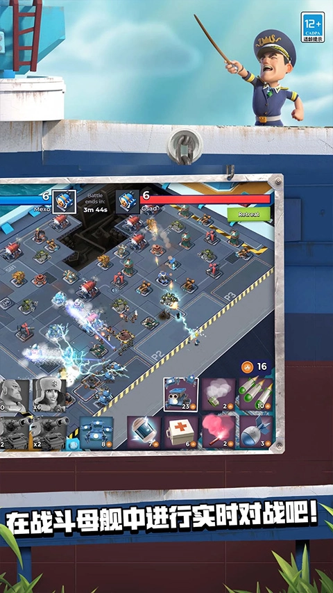 在沙滩的指定区域登陆。海面上的战舰会提供导弹和医疗支援,还能发射引导弹来实时指挥打击目标。成功乘坐登陆艇上岸的士兵会自动战斗,优先攻击距离最近的建筑,这时你需要引导他们集中火力,先摧毁敌方的防御工事。最后,只要破坏敌人的司令部,就能引爆整个敌方基地,赢得胜利并获取战利品。