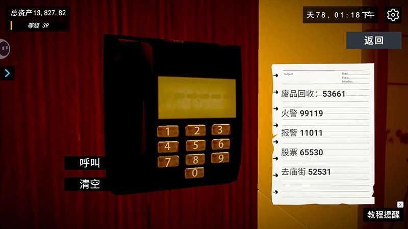 大门,你的右手边有个小电话,点开输入纸上有个回收废品的数字,然后点左边的呼叫就行