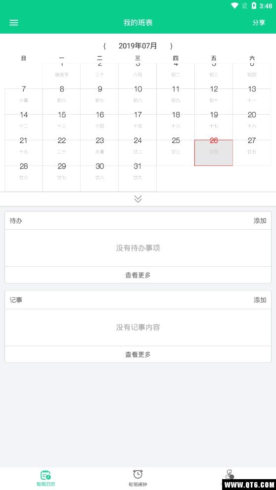 3.轮班日历:专为倒班人群打造的专属日历班表,提供手动与自动两种排班模式。