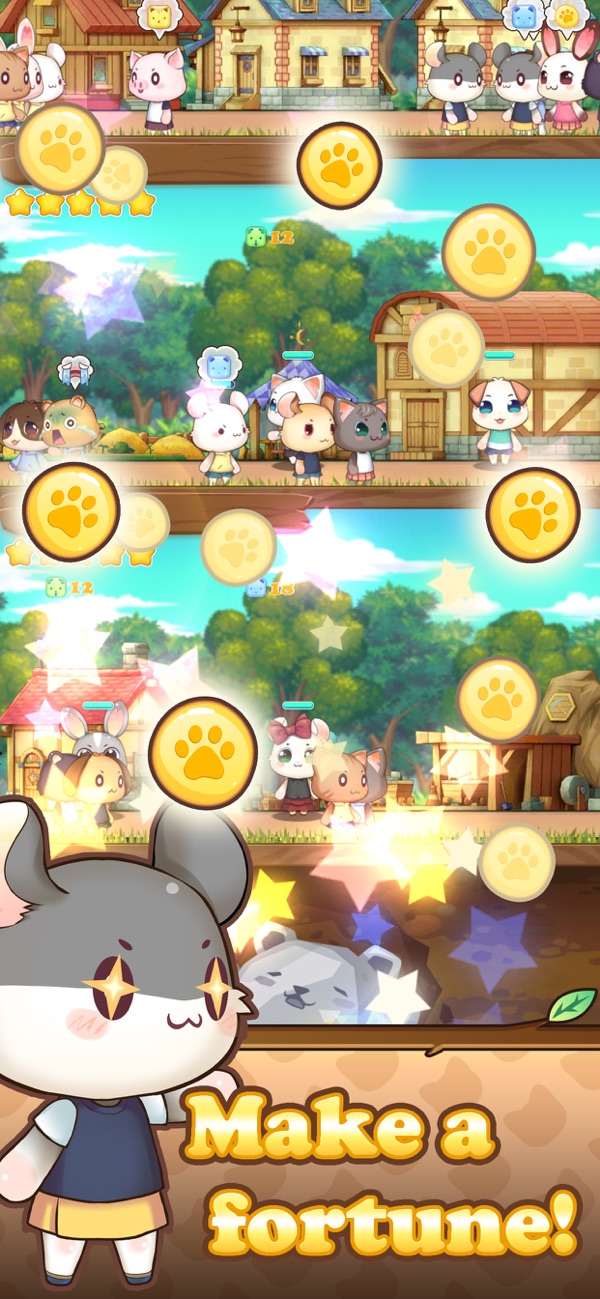通过完成任务来优化和打理你的宏伟村落;获取金币与棒棒糖以招募新伙伴,提升建筑等级能带来更丰厚的收益。